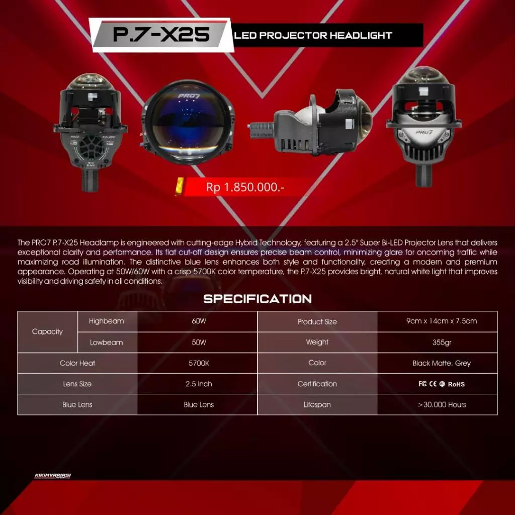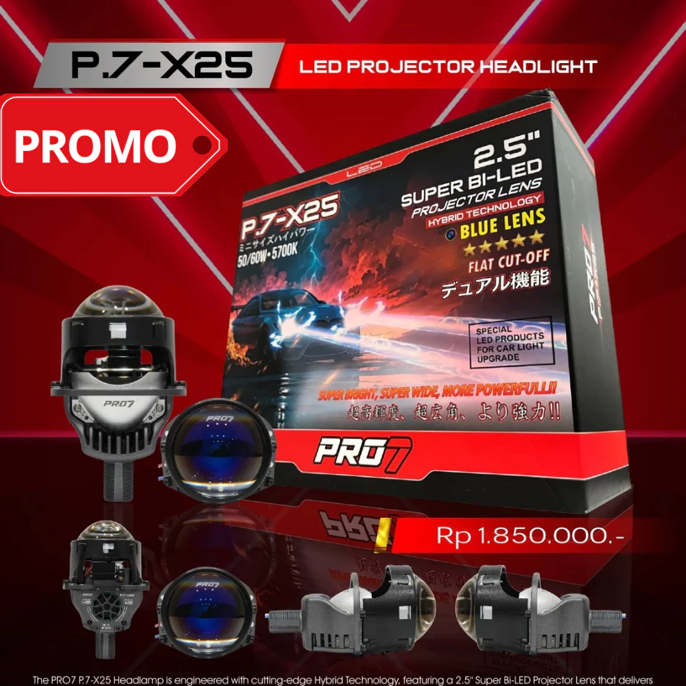 PRO7 P.7-X25 adalah headlamp premium yang mengintegrasikan teknologi Hybrid terkini dengan lensa Super Bi-LED 2.5 inch. Dirancang khusus untuk memberikan keseimbangan sempurna antara performa penerangan dan efisiensi energi, menjadikannya pilihan ideal untuk pengemudi yang mengutamakan keselamatan dan kenyamanan berkendara.