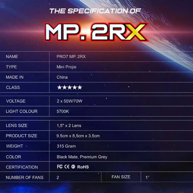 Projector Mini BiLED MP.2RX Double Lens 55W/70W 5700K | Cut Off Rapi 33mm Super Wide Beam Waterproof